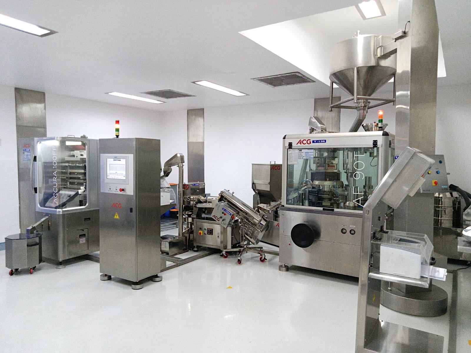 2 high speed capsule filling lines with online check weigher having annual capacity of 600 Million Units.